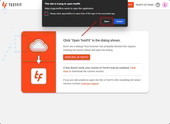 - Another browser tab will open, select "Open" to launch the desktop application.
