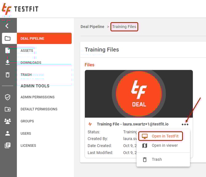 Access the TestFit Training File