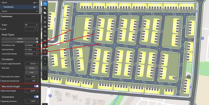 - Connection Roads: Divide large rows of internal roads when Max Block Length is enabled.