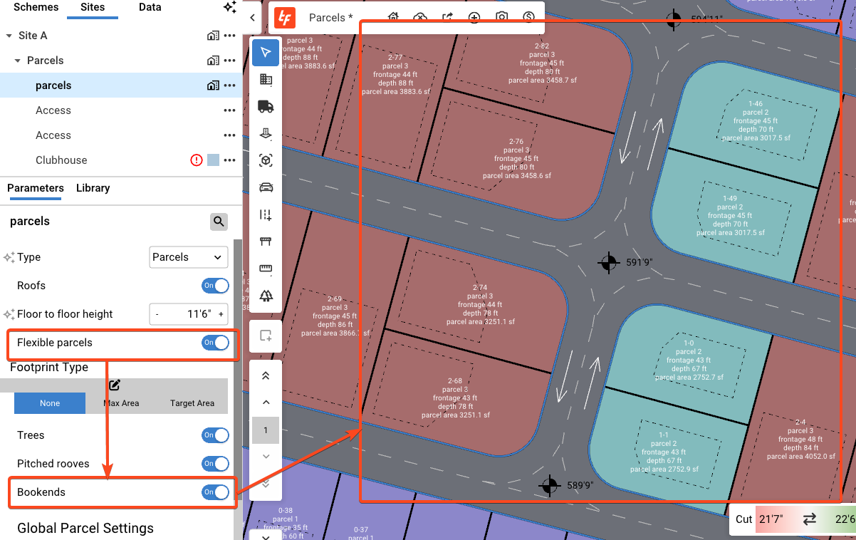 Enabling Bookends provides proper bookend lots on interior circulation blocks, giving you full control over how end lots are handled within your block layout.