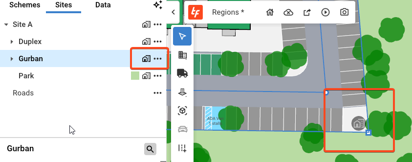 Once regions have been created within a site there are two ways to apply/change the preset. Both are accomplished by selecting the Preset Selector icon