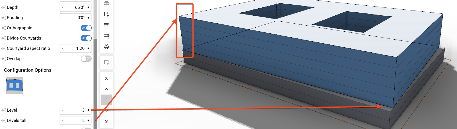 Level - The level the multifamily units begin on. If you adjust the structured parking level, you will need to adjust this as well.