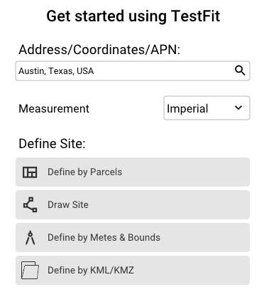 - Search for your site by entering an address, latitudinal/longitudinal coordinates, or an APN