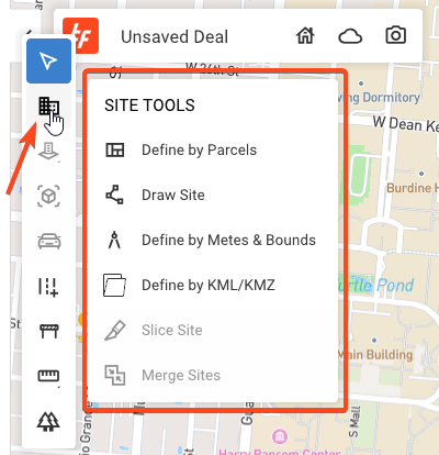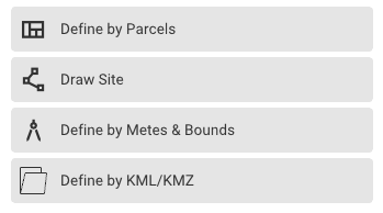 - Define your site ( by Parcel / Drawing / Metes &Bounds / KML/KMZ). Details on these methods are explained below. Once you've created the site, the lockable deal area appears. Detailed instructions on the site creation methods can be found below.