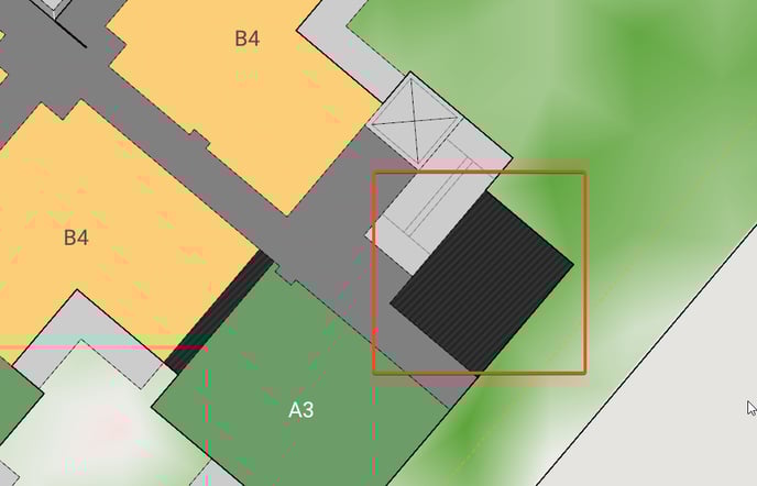There may be occasions where unallocated areas within a building are shown as black hatched areas as pictured below: