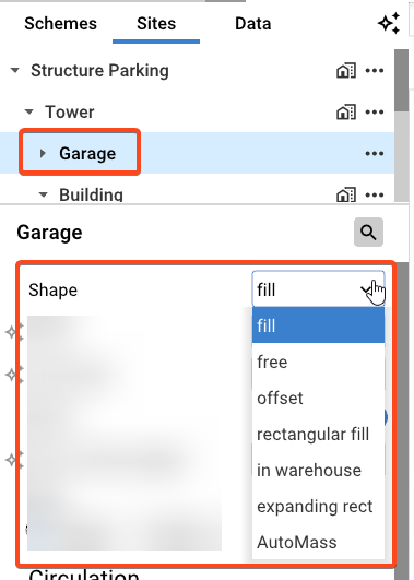 - Expanding Rect. - (Found only in presets with multifamily units, except Gurban) Forces the parking layout into a stretchable rectangle.