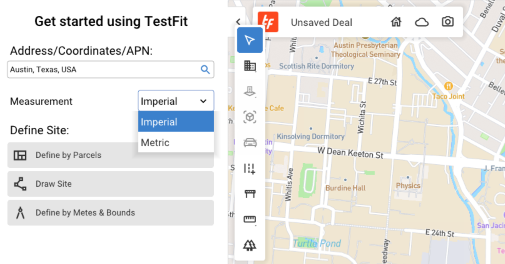 Prior to creating a site in your deal, in the Measurement dropdown switch the measurement system from Imperial to Metric.