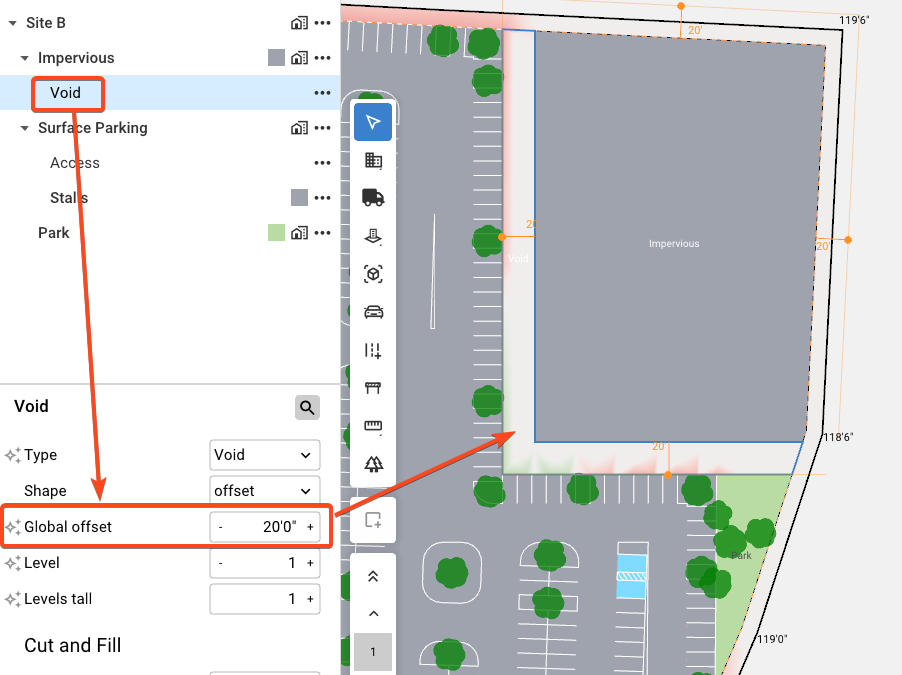 - If an offset is required around the space/building, right click inside the space and select Create Offset