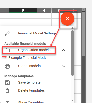 Organization Models are available once a model has been saved by a member of your organization. Once available, these custom models can then be applied to the financial model workbook.