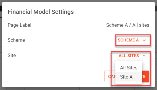 You can apply the scheme and site combination to the financial model under the Financial Model Settings.