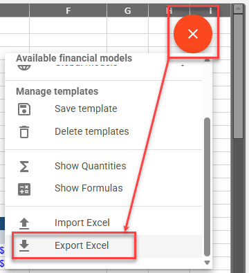 To export an Excel financial model, select the Financial Model Manager. Next, select Export Excel.