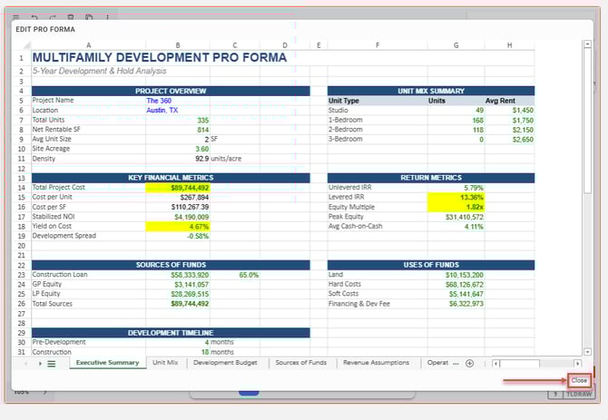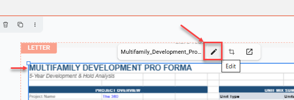 Click on the edit button to activate the pro forma withing the pro forma viewport.