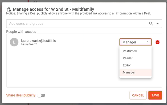 - When sharing a deal, you can assign the following roles: