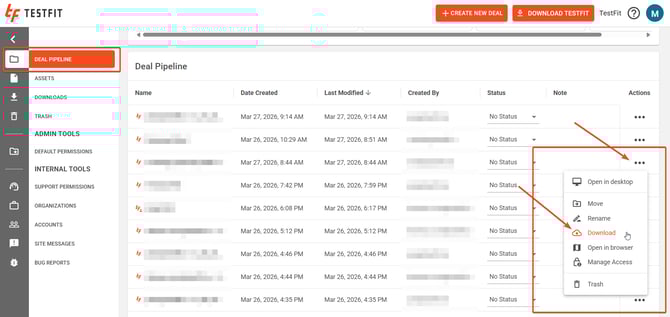 This will launch a session of the TestFit application and open the deal you are looking at in the cloud.