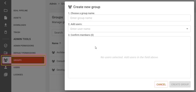 Each company has an “Everyone” group created by default that represents all members within their organization. This group can be used to quickly update permissions for specific directories, deals, or assets for all users company-wide.