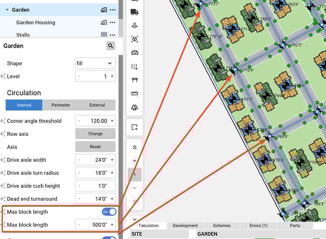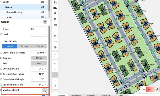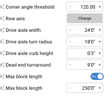 Max block length toggle - When enabled, the max block length value appears. This allows definition of maximum allowable drive lengths before a new drive aisle is added