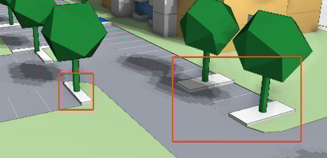 Drive aisle cub height - Controls the height of curbs in-between parking stalls and at the end of parking aisles (Only visible in 3D when Fill gaps with green space is disabled).